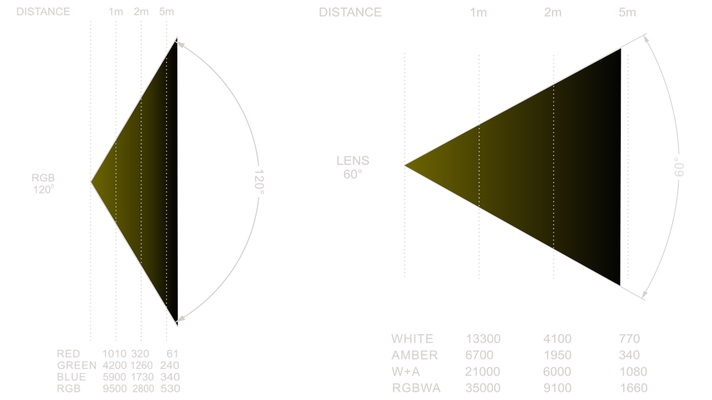 光束角度 RGB 120 ° / 白色 60 °